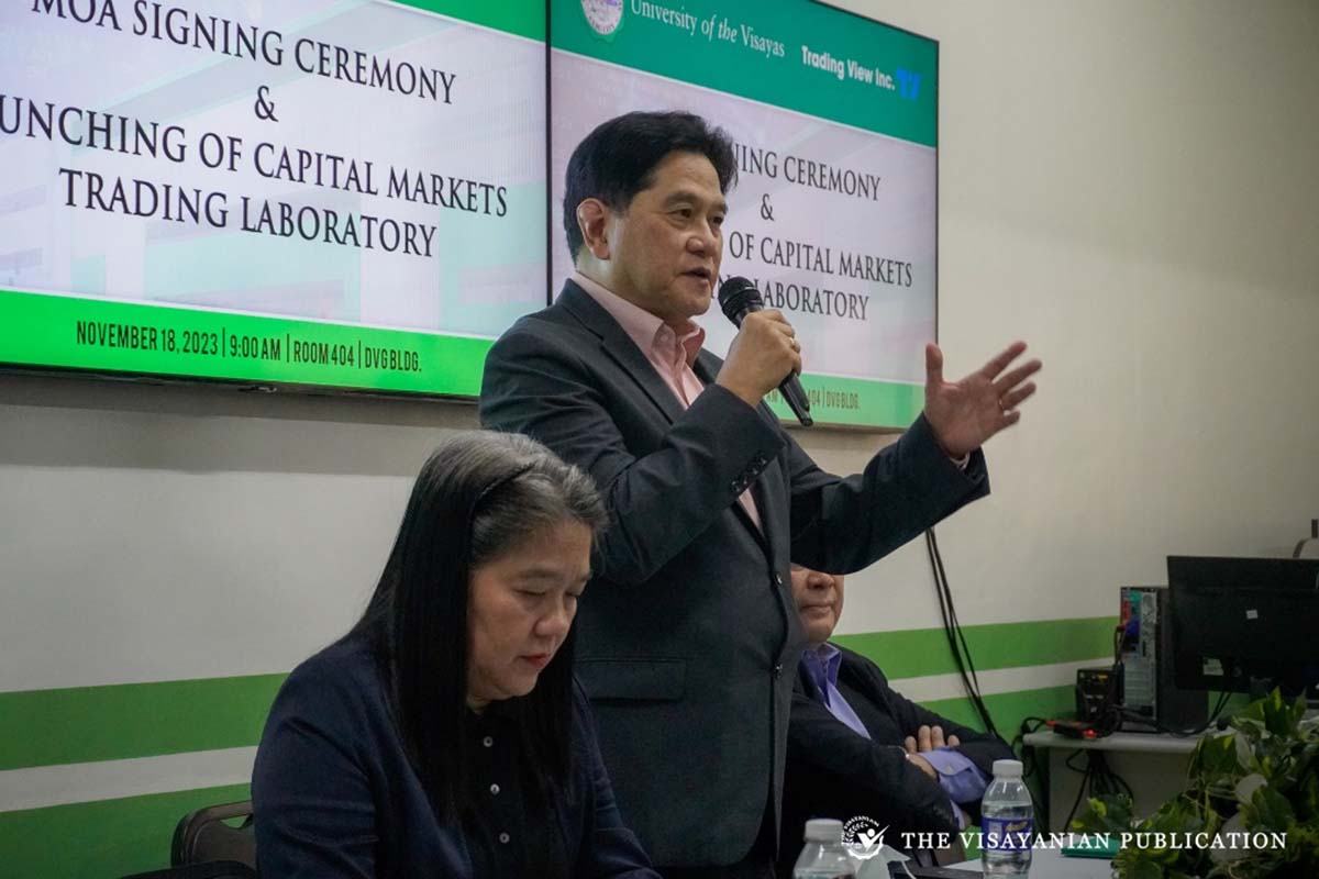 The University of the Visayas (UV) has partnered with Trading View Incorporated (TVI) through a Memorandum of Agreement (MOA) for the launching of the University of the Visayas' Capital Markets Trading Laboratory on November 18, 2023, at UV-Main Campus.