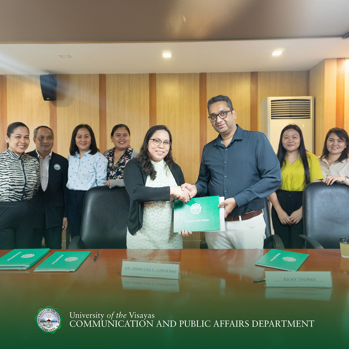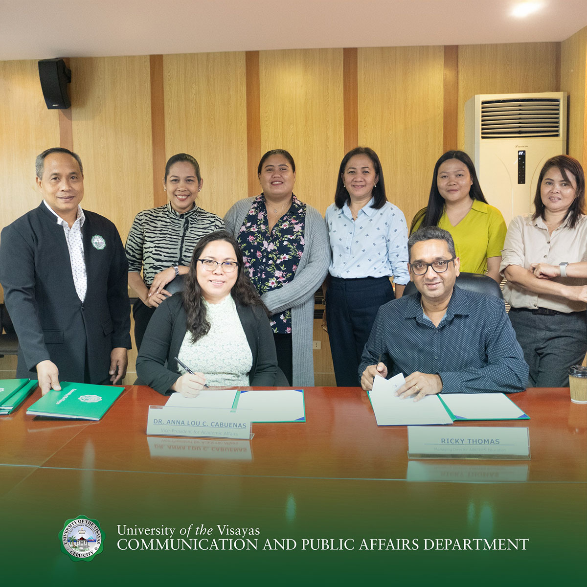 The landmark tie-up was made possible through the all-out support of the UV Executive Board and officers headed by Chairman Dr. Gerald Anthony S. Gullas; Vice Chairman Joselito F. Gullas; Treasurer Dr. Leopold Gullas-Lucero; University President Dr. Conrado E. Inigo Jr.; Vice President for Finance and Quality Management System Dr. Rosemarie Cruz-Espanol; Vice President for Academic Affairs Dr. Anna Lou C. Cabuenas; Vice President for Administration Elmer S. Ocaba; and the devoted college deans, coordinators, and directors.