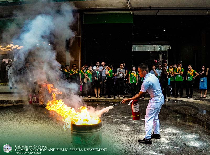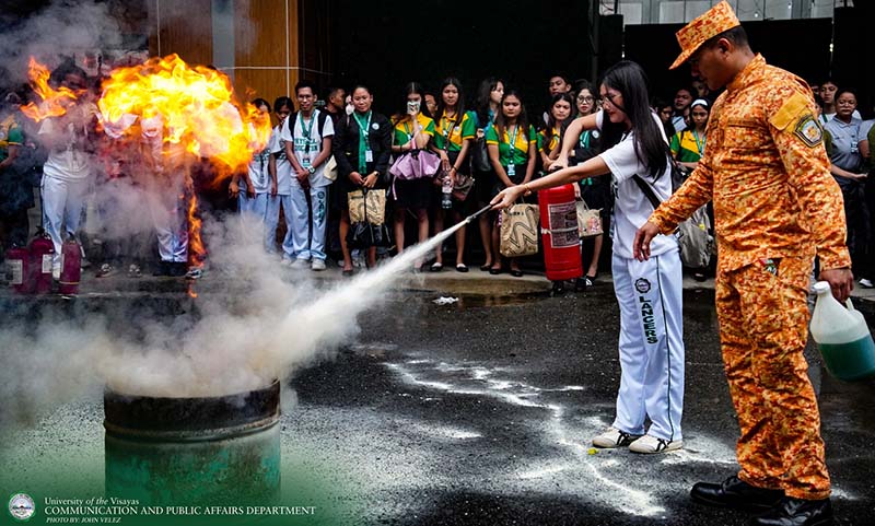 The University of the Visayas (UV), in collaboration with the Pari-an Fire Station, conducted a fire safety lecture and drill at the university grounds to promote awareness and preparedness among students and staff.